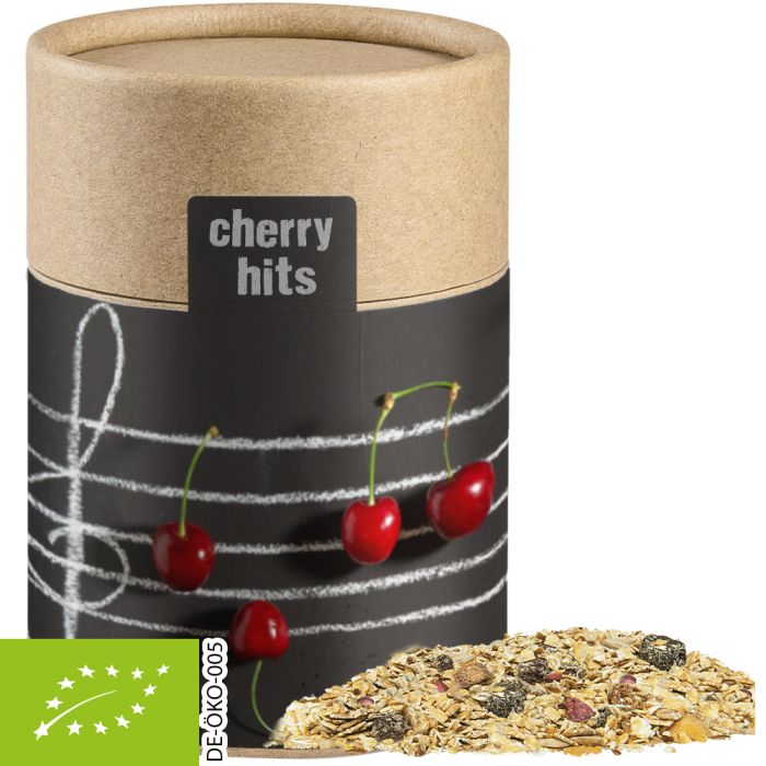 | Ingredienser | Organic muesli sour cherry: Fine oat flakes *, rye flakes *, gesture flakes *, grapes *, brown linseed *, sunflower seeds *, whole grain cornflakes *; Sour cherries freeze-dried *; *from controlled organic cultivation. |