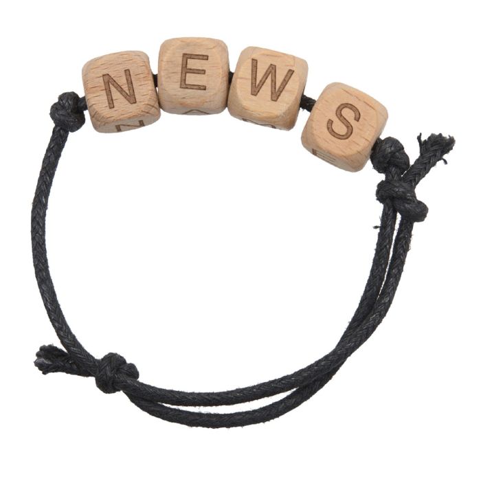 Plastfritt budskapsarmband tillverkad av trä och bomull. Sex träpärlor med lasergravyr av valfria bokstäver (A-Z) ingår i priset. Ett justerbart bomullsband gör att armbandet passar alla oavsett tjocklek på armen. Detta armband är perfekt för företaget som vill skapa egna budskapsarmband men vill undvika plastprodukter. Ett träarmband kommer också sticka ut lite mer än plastarmband.