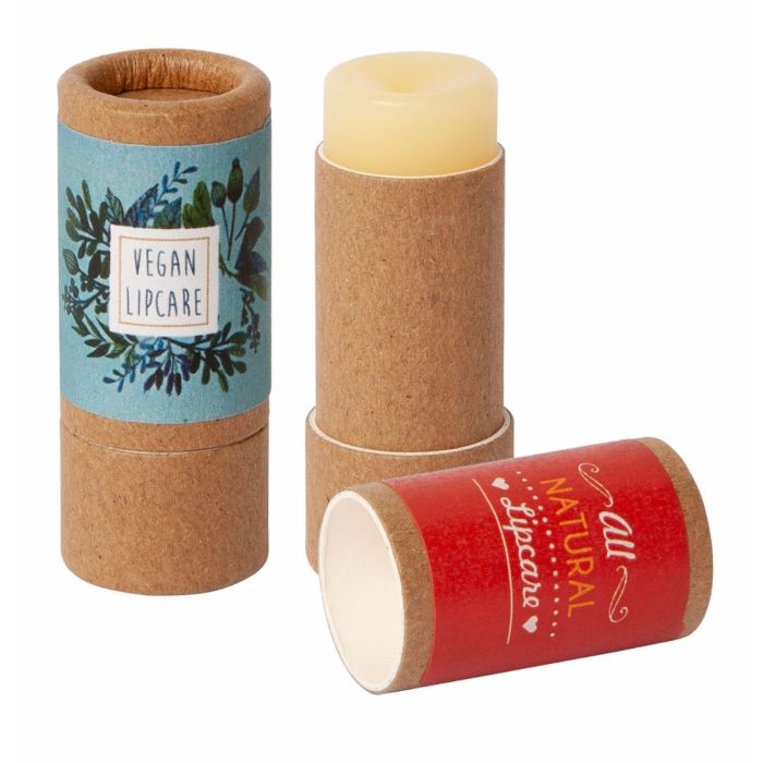 Ett helt växtbaserat och veganskt läppcerat i en smart, plastfri förpackning. Det här ceratet levereras i ett litet push-up-hylsa tillverkad av FSC®-certifierad kartong – helt utan plast, helt komposterbar. En genomtänkt produkt från innehåll till ytterhölje. Din logga eller ditt budskap trycker vi med fullfärgstryck på etikett som monteras runt hela hylsan.